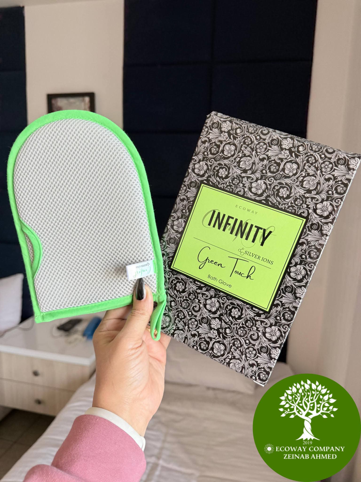 قفاز الاستحمام المدعّم بأيونات الفضة من إيكوواي ✨