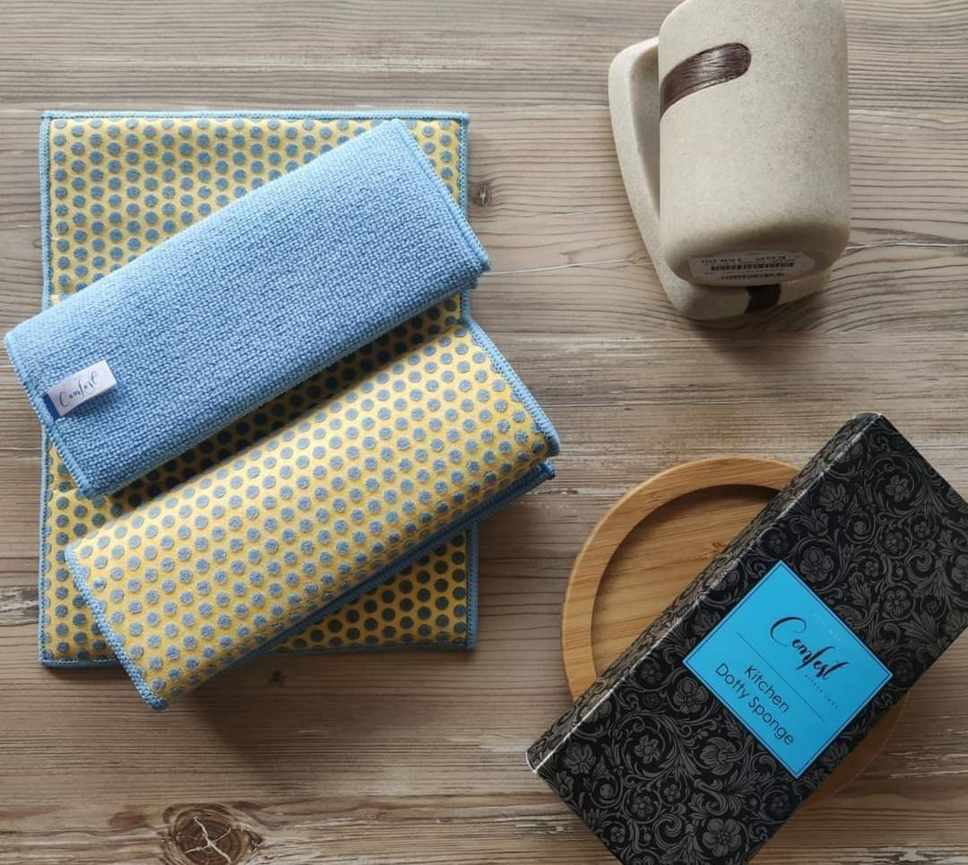 حتعملي كل ده بفوطه شيك اوي🥰 من ايكوواي ، وانتي مطمنه تماما لانها مش زي كل فوط المطبخ، مدعمه بايونات الفضه اللي بتمنع تكون البكتريا على سطح الفوطه.